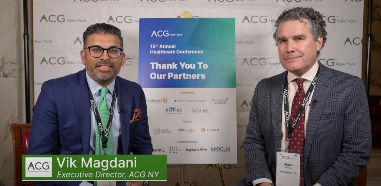 Mark Sullivan, Chief Growth Officer & Partner of Stonehaven, sits down with ACG NY during the 15th Annual Healthcare Conference. The event assembled over 450 senior Middle Market Healthcare payers, providers, systems, top private equity, family office, and strategic buyers representing billions of dollars ready to invest in the North American Healthcare Sector.